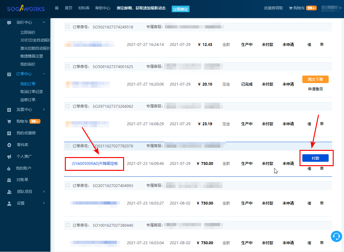 2. 點(diǎn)擊【訂單中心-我的訂單】,進(jìn)入我的訂單頁面